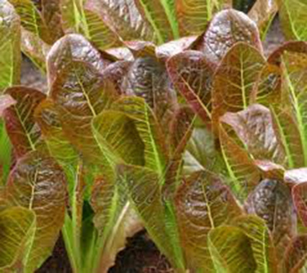 Red romaine lettuce has long crunchy spoon shaped leaves that start green and fade to profuse purple/red. Leaves are12" tall and the plant is about 10-12" wide. This lettuce is often used in Caesar salads for its crunch and color. Use red romaine lettuce for incredible edible purple borders in your flower beds. This is a great seller at farmers markets for its color and holds up well under transport.
