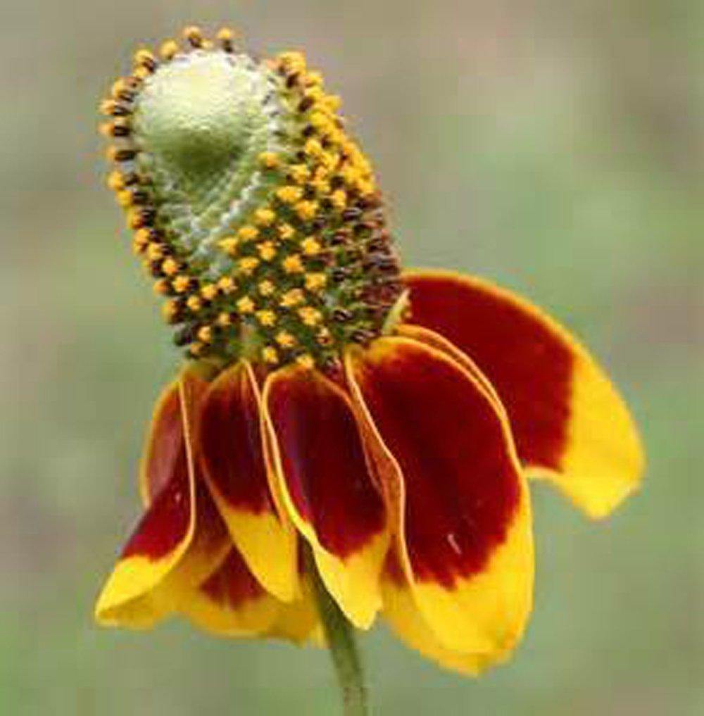 The brilliant Red AND YELLOW petals tilting away from the prominent center is suggestive of a Mexican Sombrero. A good meadow or garden flower adds unique beauty to any arrangement. 20-24" tall. Origin: US Native Wildflower Other Common Names: Red-Spike Mexican-Hat, Upright Prairie Coneflower